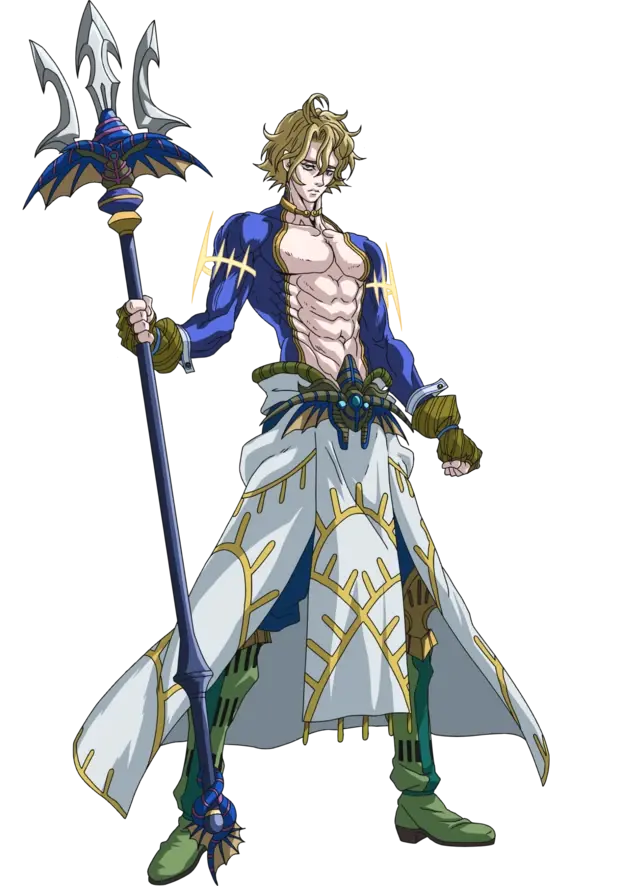 - Trident : l'arme de Poséidon est un grand trident, assez puissant pour briser le Momoshizao, l'épée légendaire de Kojiro, en un seul coup.